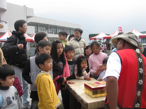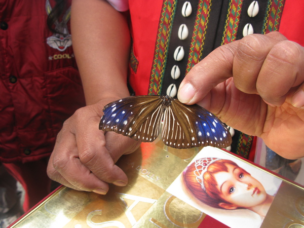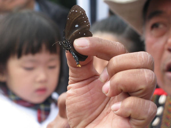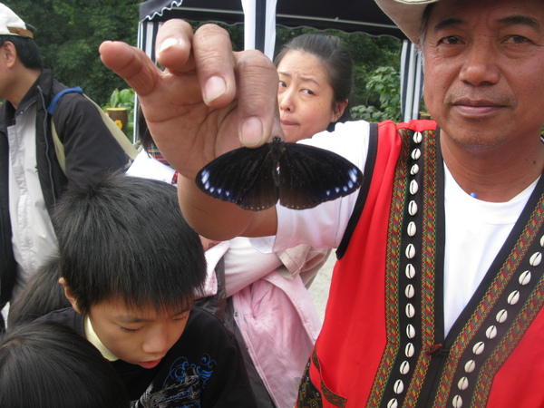 原住民解說員,很幽默的為小朋友導覽,認識紫蝴蝶,還有好記的口訣呢!聽完後大家都變紫斑蝶專家了!