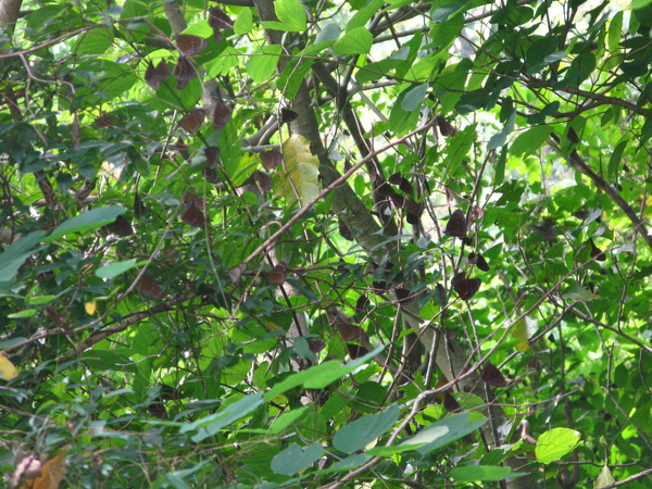 低溫時紫斑蝶會群聚停棲於避風處形成特殊的蝴蝶樹景象,很像枯葉的保護色,讓人不易察覺!