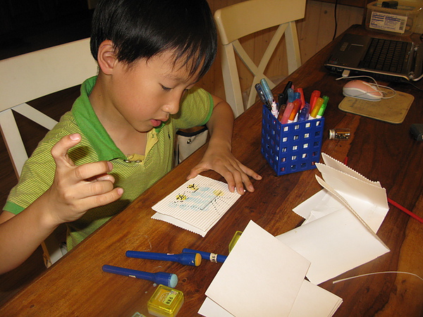 哥哥跟弟弟星期天下午安靜的在書桌前畫卡片