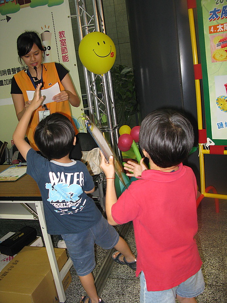 哨音聲響後站上「減碳擂台大賽」進行答題,最後利用計算機將答案