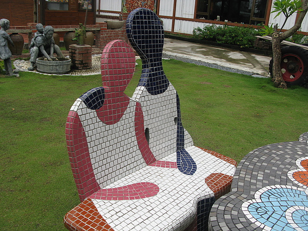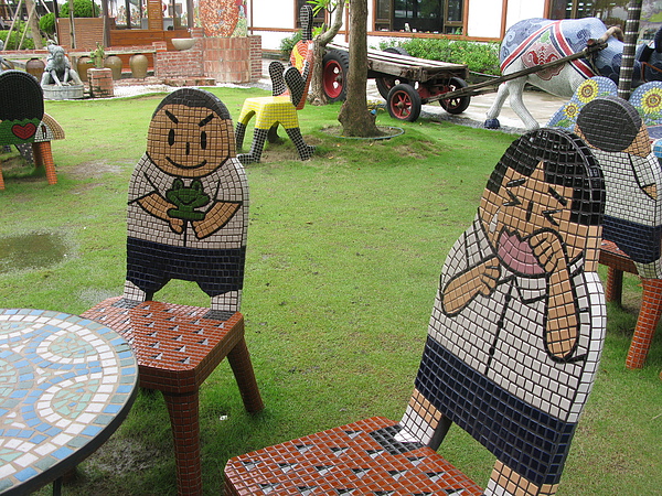 先勾勒出製作的形體外觀,石灰水泥塑出形狀,將碗片或玻璃,修減至所需要的形狀,再用水泥一片一片的黏上去!