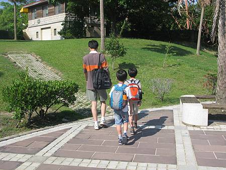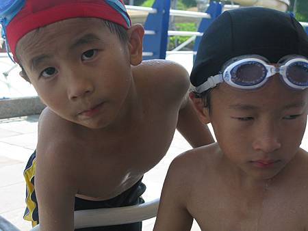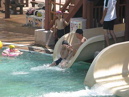 今天是兩兄弟第一次鼓起勇氣從高高的滑水道溜下來