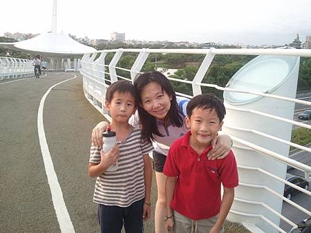 急著跟我報告爸爸帶他們騎腳踏車到蓮池潭的趣事