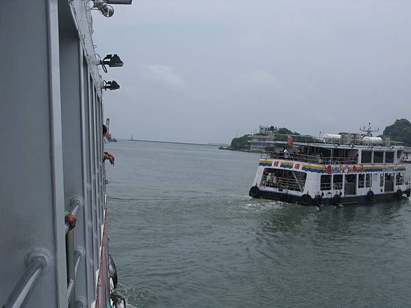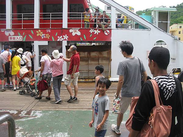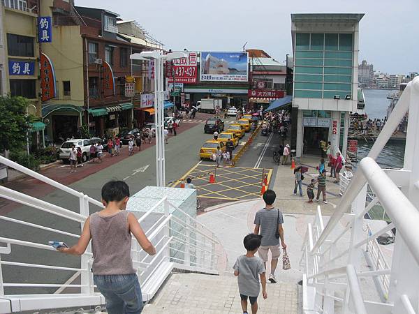 穿過天橋在到渡輪站搭船