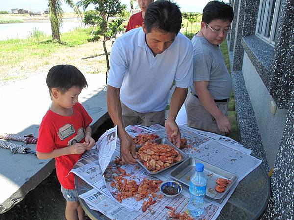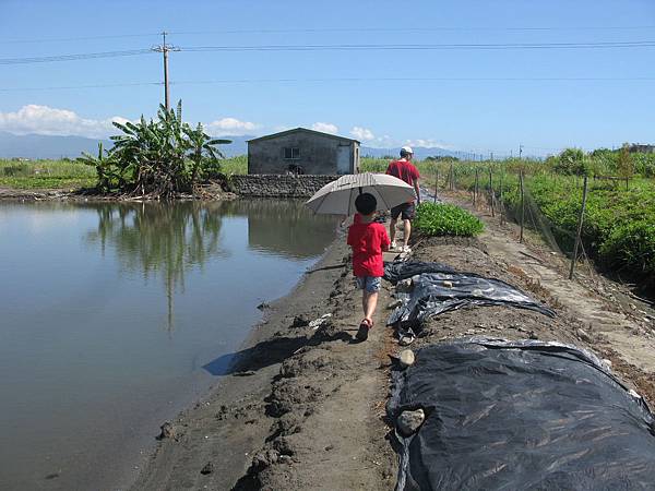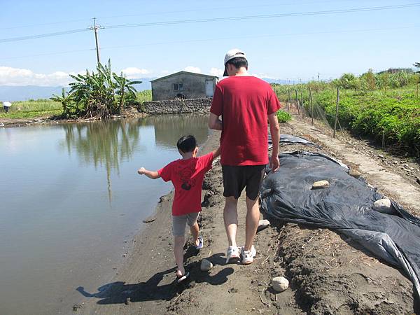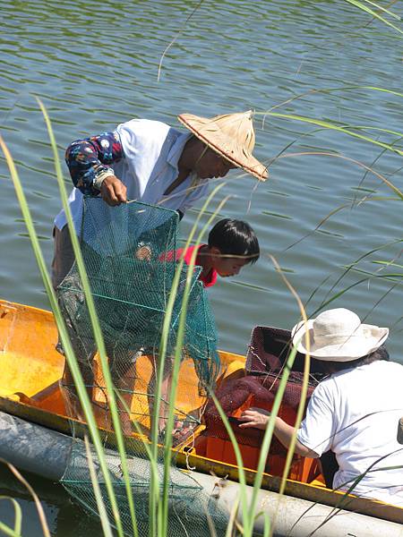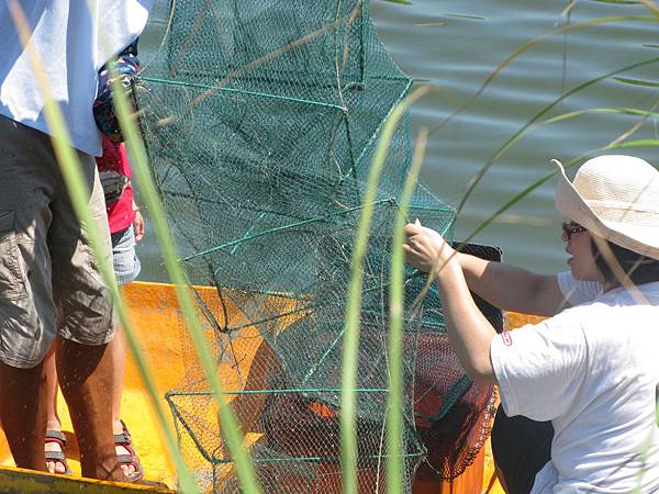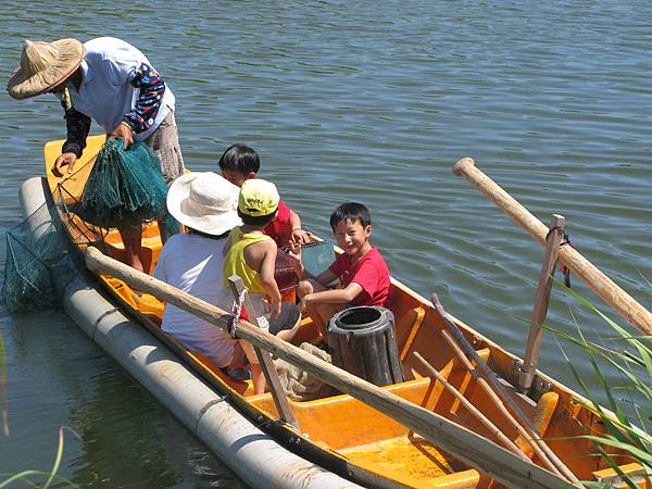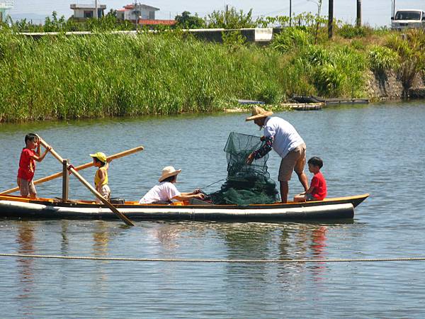 魚夫民宿老闆詢問我們要不要坐小船捕蝦子