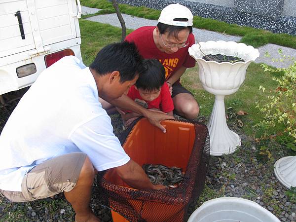 第一個捕蝦網撈上岸後,聽到陣陣歡呼聲