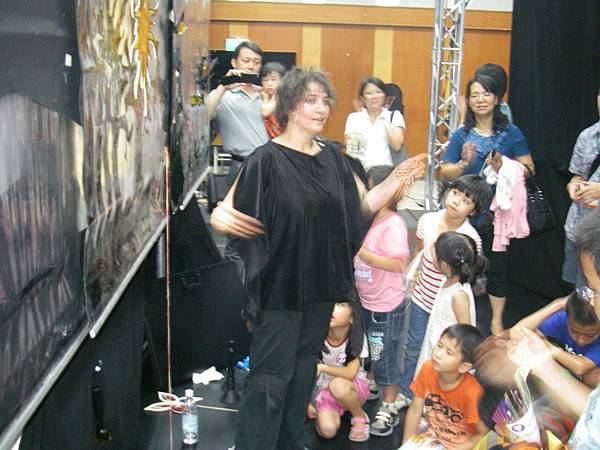 先與觀眾打聲招呼並透過翻譯了解故事內容後