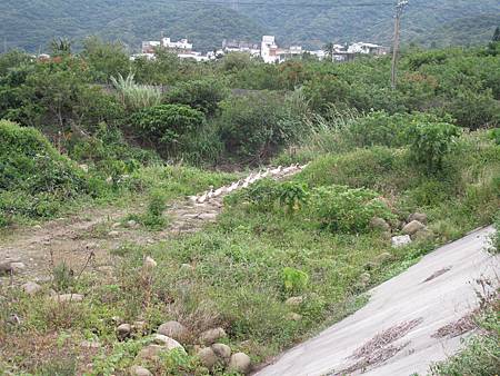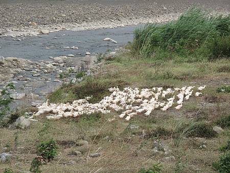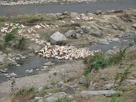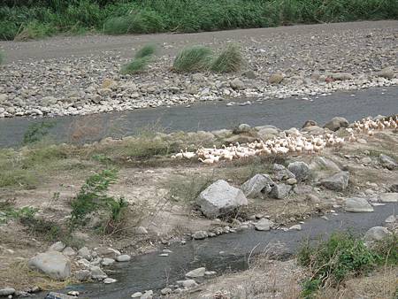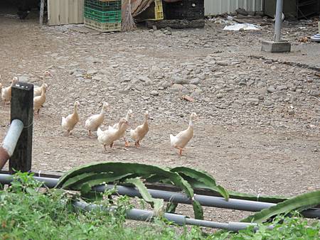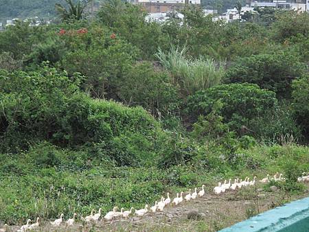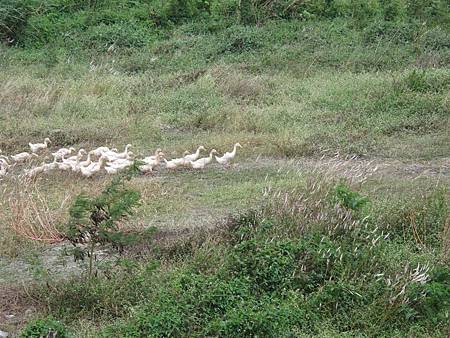 剛好碰到一群鴨子滿足的在鴨班長的帶領下排隊回家了