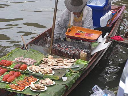 船家載著滿船鮮花,蔬菜,海鮮,水果等貨品