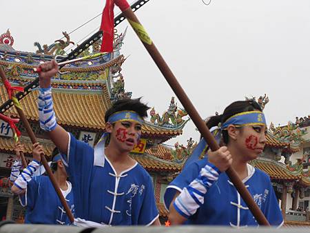 台 灣廟宇香火鼎盛,宋江陣大都流傳於嘉南平原以南的農村,並以台南、高雄兩縣市最多,早期屬於農閒時期農村子弟學習武藝的活動,日治時代,因高壓統治,取而 代之成為宗教活動酬神娛人的武術表演性陣頭。戒嚴時代,宋江陣因需使用刀械,所以遭到政府刁難或禁止。宋江陣通常附著於寺廟,成為神佛駕前的藝陣,最具有 盛名的首推高雄縣內門鄉宋江陣,內門鄉內有「內門紫竹寺」及「南海紫竹寺」,推動民俗江陣古老文化的傳承不遺餘力,有一百四十餘年歷史