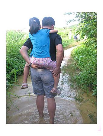 淡定騎著小噗噗在泥濘的泥巴路上勇往直衝
