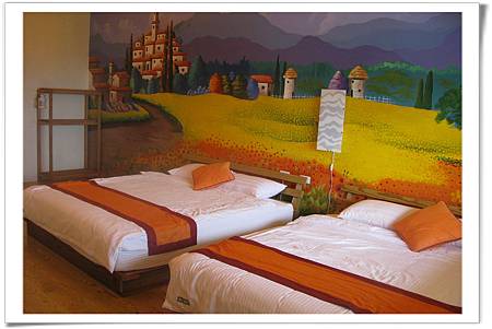 我們的房間是一幅歐洲鄉間小徑的圖案