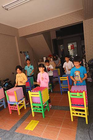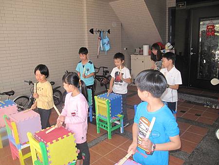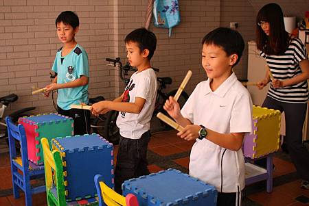 沒有鼓與打擊棒(只有巧拼做成的四方鼓與衛生筷束成的鼓棒)